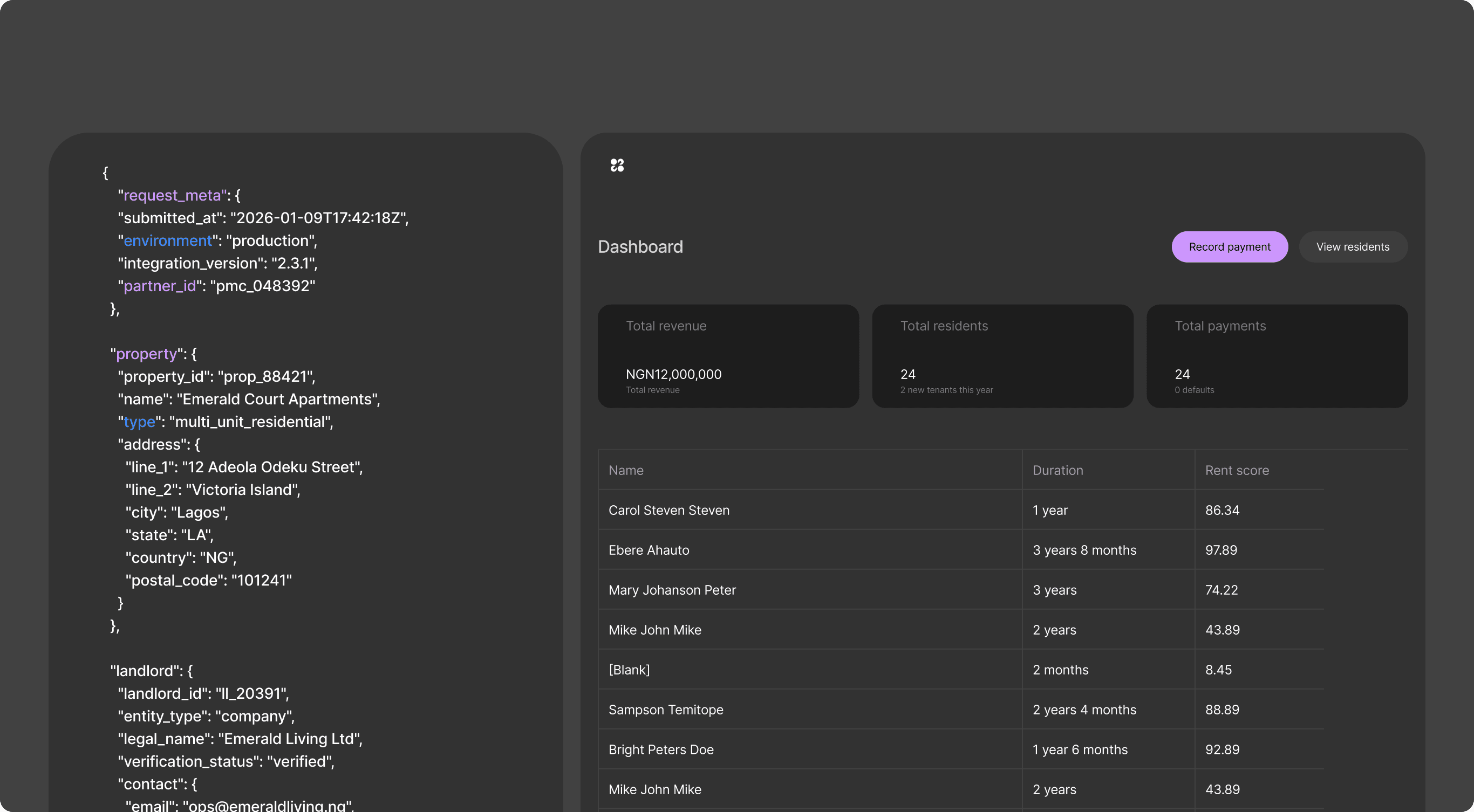 Centralize tenant screening, onboarding, manage notifications, rent confirmations and historical records across multiple properties in real time.